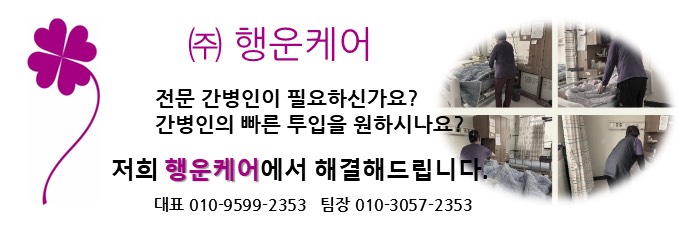 저희 행운케어는 병원 전문 간병 업체로 150병상 이상의 종합병원의 공동 간병을 비롯하여 공동간병과 개인간병을 전문으로 하는 간병 업체입니다.